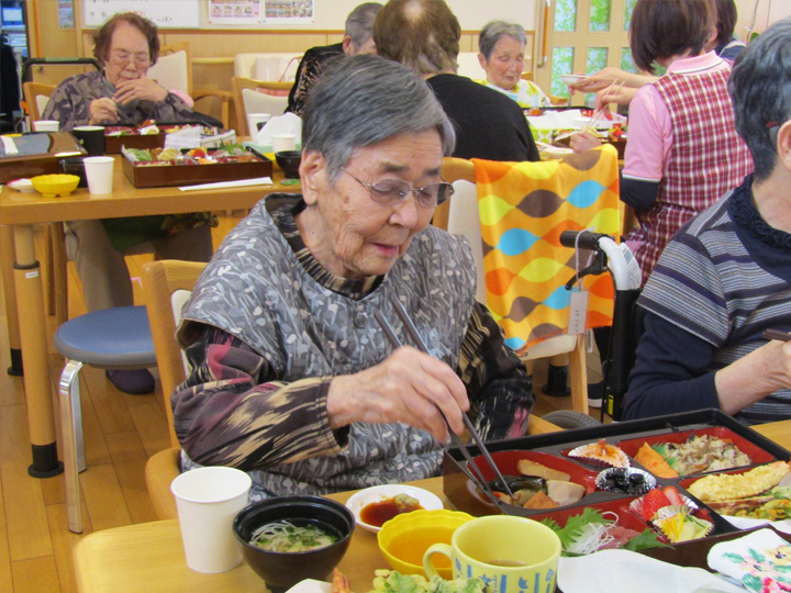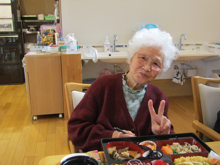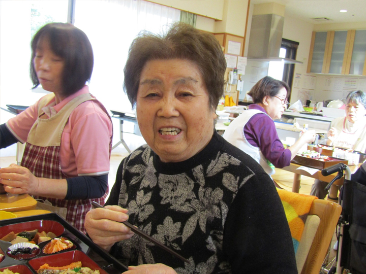 職員が腕を振るった豪華なお料理を前に、入居者様も笑顔で新年をお祝いいたしましたヽ(^o^)丿